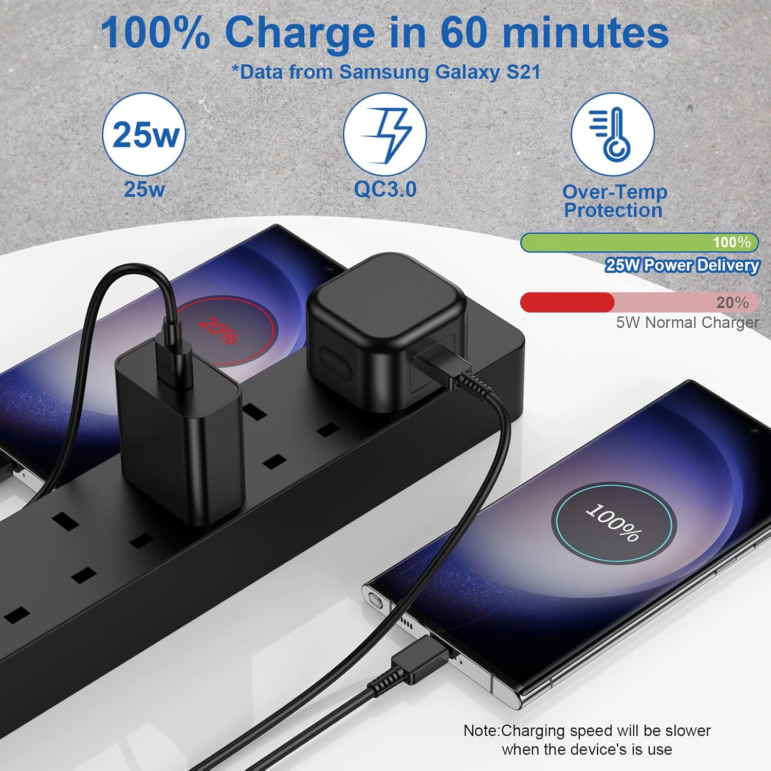 - [What You Get]: 2-PACK 25W super fast chargers and 6.6FT Type C to C cables. 24*7 friendly customer support ensures your pleasing shopping experience. If there is any problem, please do not hesitate to contact us