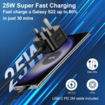 - [25W Samsung Super Fast Charger]: Equipped with an USB Type C port, the Power Delivery 3.0 USB C wall charger provides you Max 25W output power. You can charge your deivce back to full power in no time by using the 25W USB C charger for Samsung galaxy S22, S22 Ultra, S22+, S22 Plus, z fold3 5G, z flip 3, S21, S21 Ultra, S21 Plus, Note 10 and more. You can charge your Phone to 60% in just half an hour, 5 times as fast as standard USB C wall charger