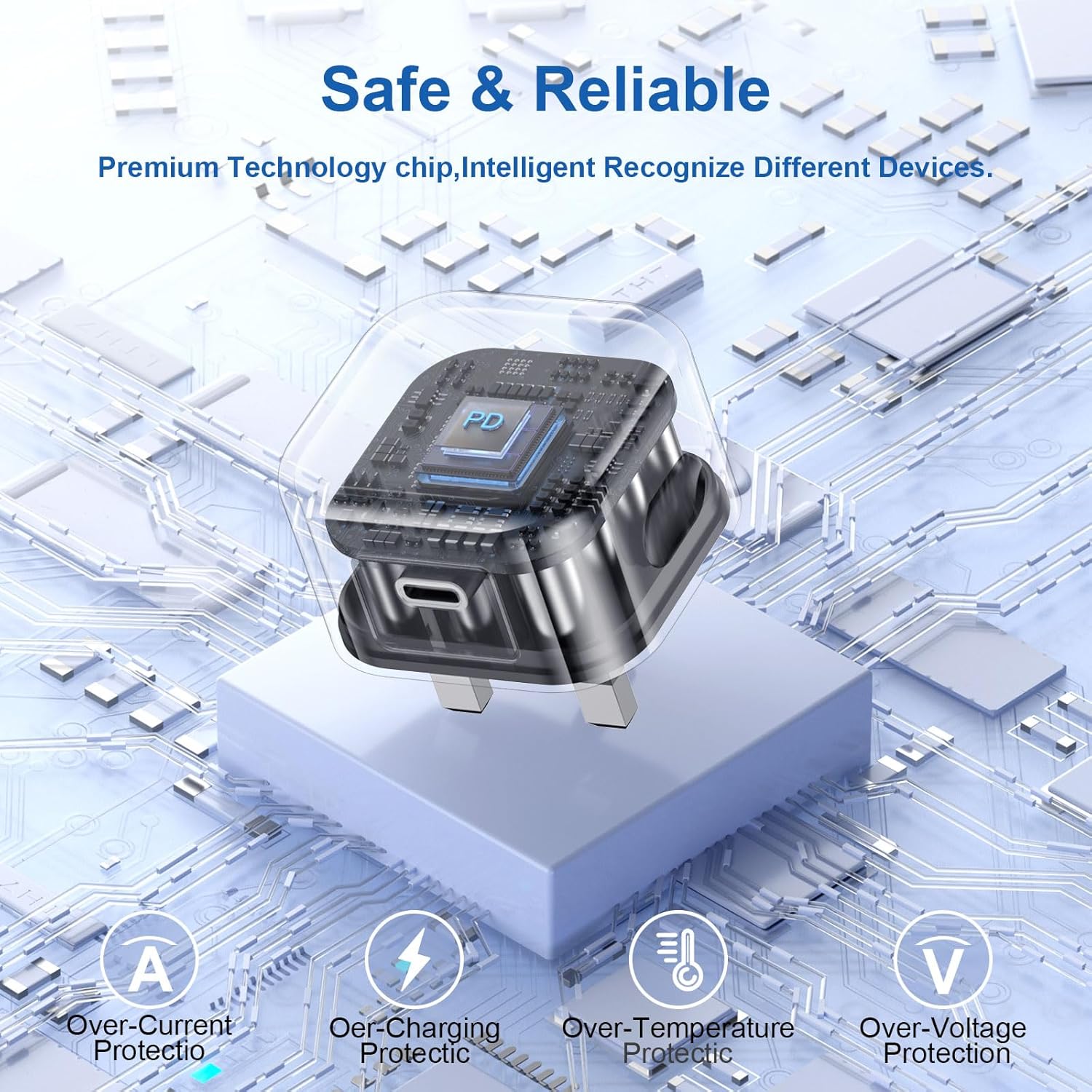 - [Safety Assurance]: The Samsung galaxy S24 super fast charger is built in intelligent chips, which can protect your devices against damage caused by short circuit, over-current, over-voltage, over-heating, and over-charging issues. Automatically stops charging when battery capacity is full to ensure your device safety and longevity